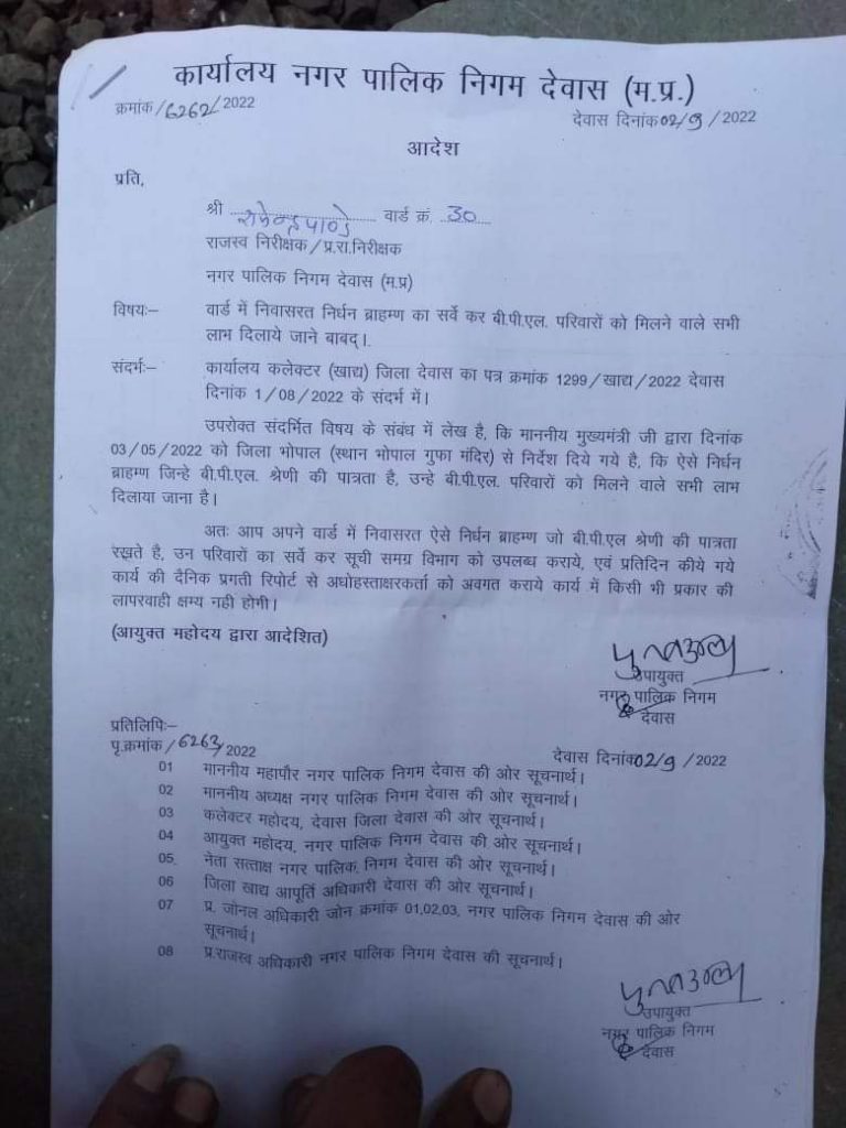 देवास। अखिल भारतीय ब्राह्मण महासंघ जिला देवास के अध्यक्ष पंडित दिनेश मिश्रा ने ब्राह्मण समाज के महत्वपूर्ण पद पर पंडित आदित्य दुबे को अखिल भारतीय ब्राह्मण युवा संघ का जिला अध्यक्ष मनोनीत किया एवं पंडित विमल शर्मा को नगर अध्यक्ष मनोनीत किया। जिले के ब्राह्मण युवाओं को संगठन से जोड़कर संगठन को सामाजिक हित में कार्य करने के लिए मजबूती प्रदान करने के उद्देश्य से यह मनोनयन किया गया है। इनके मनोनयन पर सर्व ब्राह्मण समाज देवास के समस्त पदाधिकारियों, वरिष्ठजन, युवा एवम महिला संघ ने हर्ष व्यक्त करते हुए इनके उज्ज्वल भविष्य के लिए शुभकामनाएं दी है।