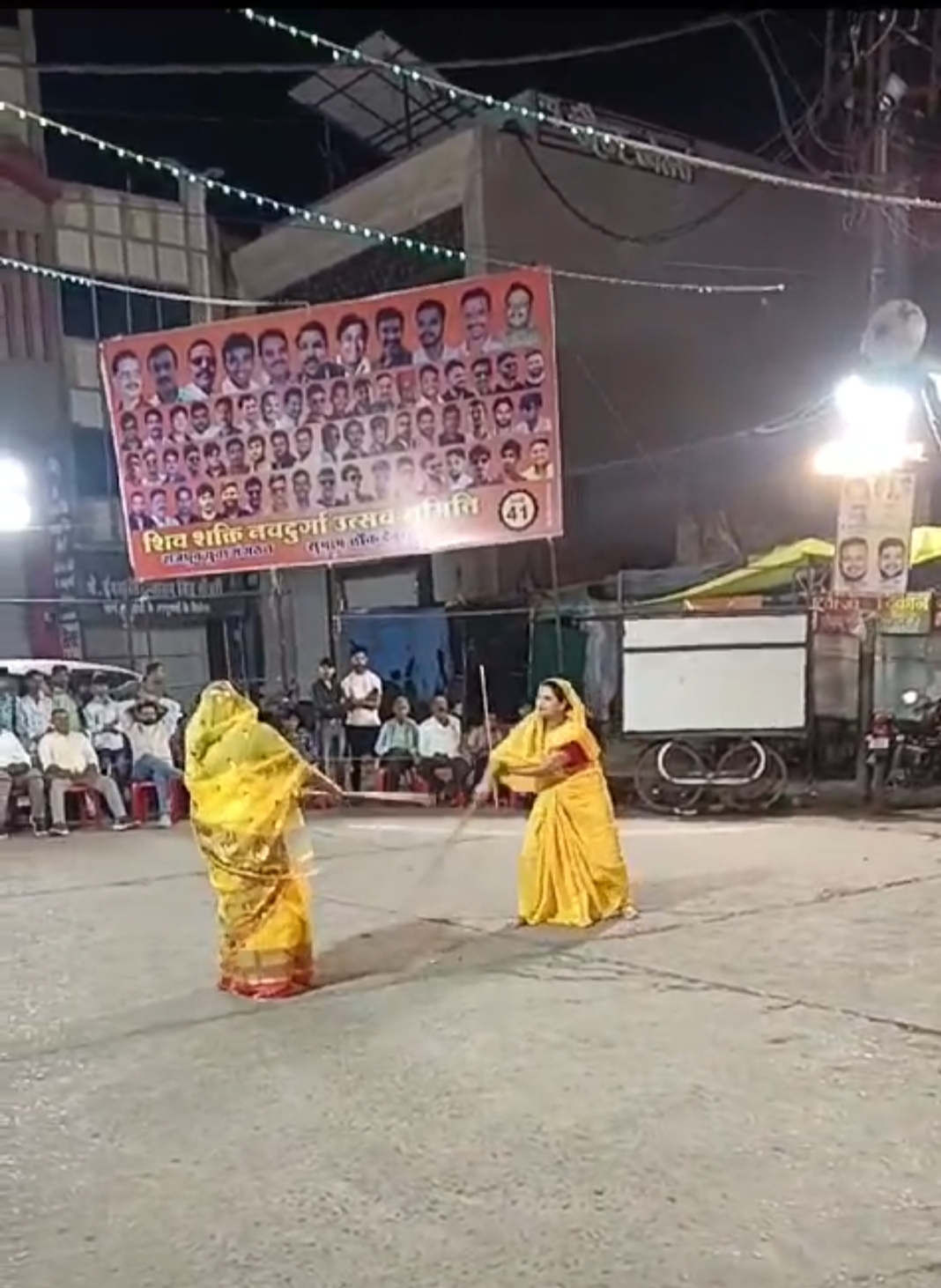 नवदुर्गा पंडाल में नारी शक्ति ने शस्त्र पूजन कर किया दबंगता के साथ किया शस्त्र प्रदर्शन जिसने देखा कह उठा वाह भारत की नारी शक्ति …..