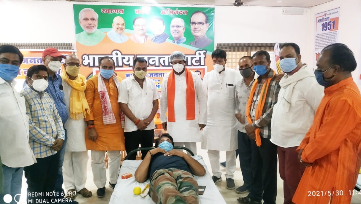 देवास। मोदी सरकार के सफलतम 7 वर्ष पूर्ण करने के उपलक्ष्य में जिला भजापा कार्यालय पर भाजपा पिछड़ावर्ग मोर्चा द्वारा सेवा ही संगठन के अंतर्गत रविवार को रक्तदान शिविर का आयोजन किया गया। शिविर का शुभारंभ विधायक माननीय श्रीमंत राजमाता गायत्री राजे पवार, सांसद महेंद्रसिंह सोलंकी,भाजपा जिला अध्यक्ष राजीव खंडेलवाल, सुभाष शर्मा, ओम जोशी, रायसिंह सेंधव, बहादुर मुकाती, फुलसिंह चावडा मोर्चा के जिलाध्यक्ष अशोक जाट एवं मोर्चा के पदाधिकारियों, जिला पदाधिकारियों व कार्यकर्ताओं की उपस्थिति में आयोजित किया गया। श्रीमंत गायत्री राजे पवार ने उपस्थित कार्यकर्ताओं को संबोधित करते हुए कहा कि जरूरतमंदों, असहायों, दिव्यांगों सहित पात्र लोगों के हितार्थ मोदी सरकार द्वारा संचालित जनकल्याणकारी योजनाओं का ज्यादा से ज्यादा प्रचार प्रसार कर लोगों को लाभान्वित करें। रक्त दान महादान है जिससे किसी भी मानव की जान बच सकती है।इसलिए ऐसे आयोजन निरन्तर करने का प्रयास करें। इस अवसर पर भाजपा मण्डल उपाध्यक्ष देवेंद्र नवगोत्री, आलोक साहू, अजय सोनी, संतोष वर्मा, दिनेश जाट, मनोज, डॉ रवि चौधरी, अर्जुन चौधरी, प्रतीक सोलंकी,सुभम जाधव, जितेंद्र जायसवाल, राजेश बारोड, अजय वर्मा, जिला महामंत्री मनोहर जाधव एवं अन्य पदाधिकारीयो ने शिविर में रक्त दान किया।