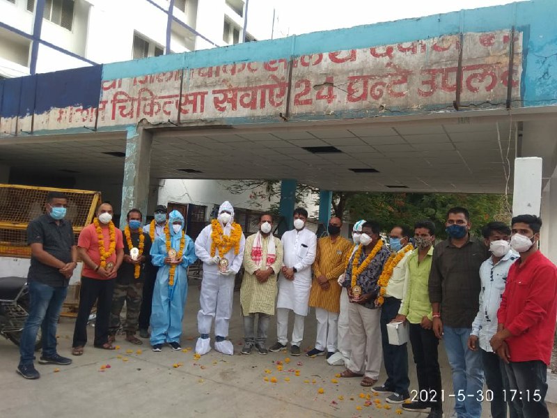 देवास। केंद्र सरकार के सफलतम 7 वर्ष पूर्ण होने पर भाजयुमो ने कोरोना योद्धाओं का सम्मान किया। भाजपा प्रदेशाध्यक्ष विष्णु दत्त शर्मा, पूर्व प्रदेशाध्यक्ष अभिलाष पांडे, भाजपा जिलाध्यक्ष राजीव खंडेलवाल के मार्गदर्शन में भाजयुमो प्रदेशाध्यक्ष वैभव पंवार के नेतृत्व में भाजयुमो प्रदेश संयोजक दीपक बैरागी ने महात्मा गांधी जिला अस्पताल में में कोरोनाकाल में सेवा दे रहे डॉक्टरो सहित नर्स, स्टाॅफ व साफ-सफाई कर्मचारी का स्वागत सम्मान स्मृति चिन्ह भेंटकर किया। मनीष पण्ड्या ने बताया कि कार्यक्रम में पूर्व जिलाध्यक्ष बहादुर मुकाती, राजेश यादव, सुमेर दरबार, मोर्चे के दुर्गेश चिल्लोरिया, शुभम पांचाल, विशाल सोलंकी, हेमन्त राठौर, सागर चैहान, सतीश गोयल, जितेंद्र राजपूत, जगदीश गोयल, गोलू राजा सहित युवा मोर्चे के कार्यकर्ताओं ने सभी योद्धाओं का फूलों की पंखुड़ियों से भी स्वागत कर उत्साहवर्धन किया। आभार भाजयुमो नगर उपाध्यक्ष दुर्गेश चिल्लोरिया ने माना।