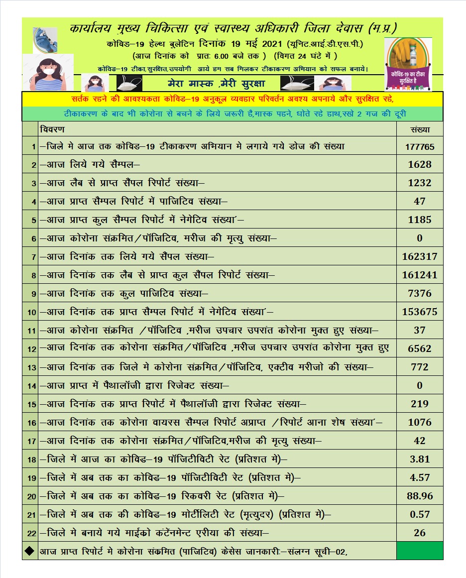 ——————————– देवास 18 मई 2021/ मुख्य चिकित्सा एवं स्वास्थ्य अधिकारी डॉ एम पी शर्मा ने बताया कि मध्यप्रदेश शासन लोक स्वास्थ्य एव परिवार कल्याण विभाग के अंतगर्त स्वास्थ्य विभाग देवास में जिला विस्तार एवं माध्यम अधिकारी (जिला मीडिया अधिकारी) के पद पर पदस्थ सुरेश सिंह सिसोदिया 30 अप्रैल 2021 को सेवानिवृत्त हुए। भारत शासन,मध्यप्रदेश शासन द्वारा जारी कोविड-19 गाइड लाइन का पालन करते हुए श्री सिसोदिया का विदाई समारोह आयोजित नही किया गया उनके सेवानिवृत्त होने पर जिले में पदस्थ उप जिला मीडिया अधिकारी कमलसिंह डावर को जिला मीडिया अधिकारी का प्रभार दिया गया है। आपके द्वारा इस विभाग में विभिन्न पदों पर रहकर 37 वर्ष 3 माह सेवाएं दी गई। आप बी. एस-सी. ,सेनेटरीइंस्पेक्टर डिप्लोमा ,एम ए (समाजशास्त्र ),पोस्ट ग्रेजुएशन डिप्लोमा इन हेल्थ एजुकेशन, एम.बी.ए .(हॉस्पिटल एडमिनिस्ट्रेशन) योग्यता धारित व राज्य तथा राष्ट्रीय स्तर की अनेक प्रशिक्षण प्राप्त किये। मध्य प्रदेश स्वास्थ्य कर्मचारी संघ के निरंतर 30 वर्ष तक प्रदेश महामंत्री के पद पर रहकर प्रदेश के स्वास्थ विभाग के कर्मचारियों /अधिकारियों की न्यायोचित समस्याओं के लिए सौहार्दपूर्ण वातावरण में शासन और प्रशासन स्तर पर संघर्षरत रहकर अनेक समस्याओं का समाधान भी इनके द्वारा कराया गया। कमल सिंह डावर लगातार 1 वर्ष से बिना कोई छुट्टी लिए आमजन के लिए कोरोना अपडेट की खबर देते रहे हैं सबसे बड़ी दिनभर कार्यालय में सेवा देने के बाद सुबह पूरी जिम्मेदारी के साथ कोरोना अपडेट देते रहे हैं। आपदा के समय में लगातार बिना रुके बिना थके अपना कर्तव्य निभाने वाले कमल सिंह डावर को स्वास्थ्य विभाग के अधिकारी कर्मचारियों ने बधाई दी।